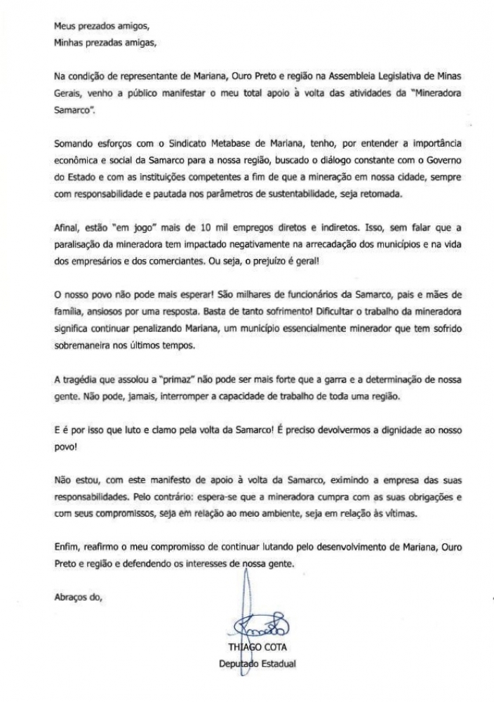MANIFESTO • Pela volta da mineração em Mariana e Ouro Preto