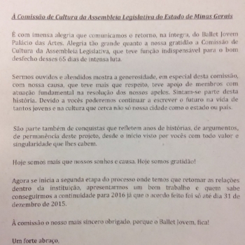 Vitória do Ballet Jovem. Vitória da Comissão de Cultura.