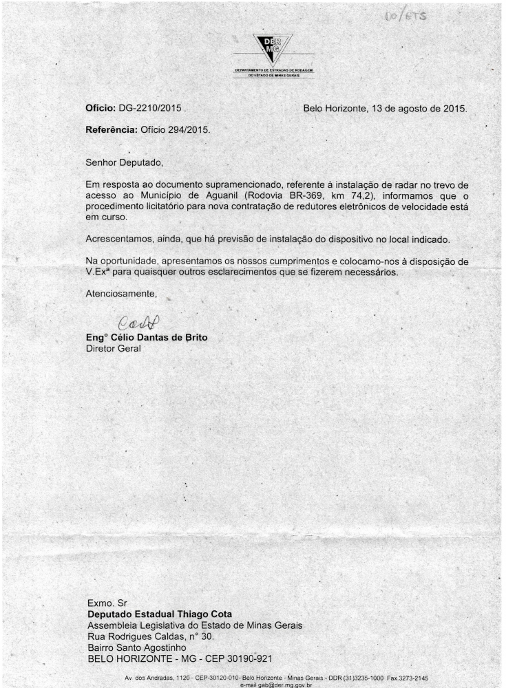 Thiago Cota conquista redutor de velocidade para o trevo de acesso ao município de Aguanil