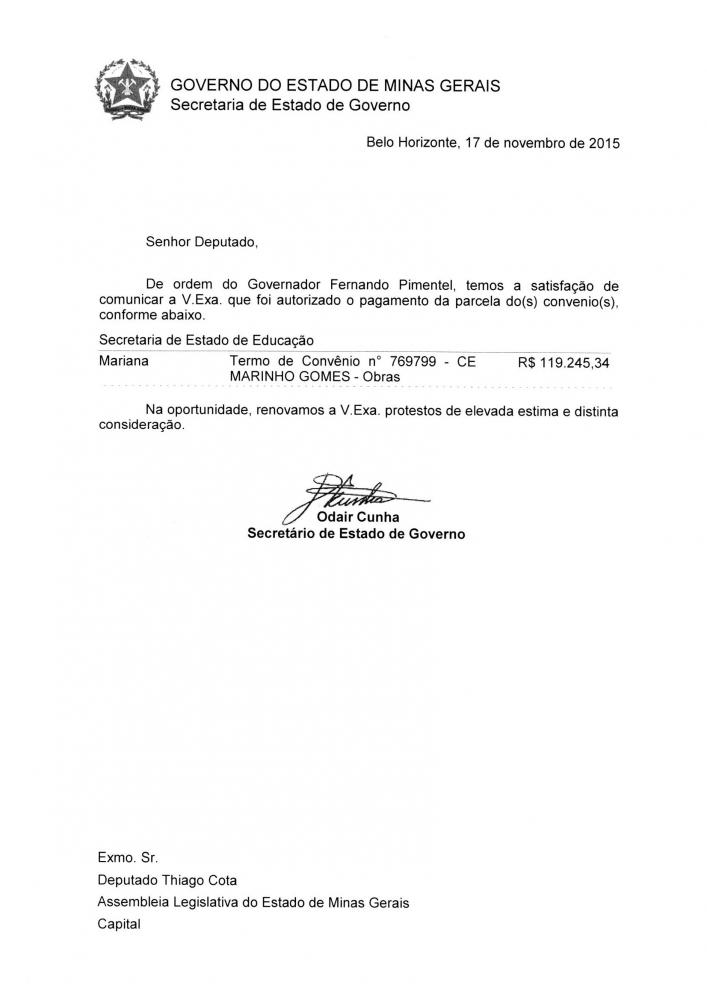 Thiago Cota viabiliza recursos para Escolas Estaduais de Mariana