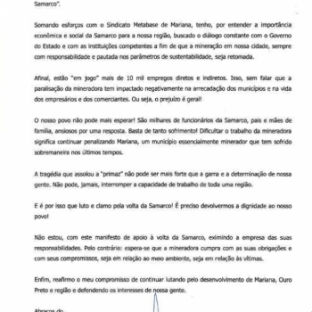 MANIFESTO • Pela volta da mineração em Mariana e Ouro Preto