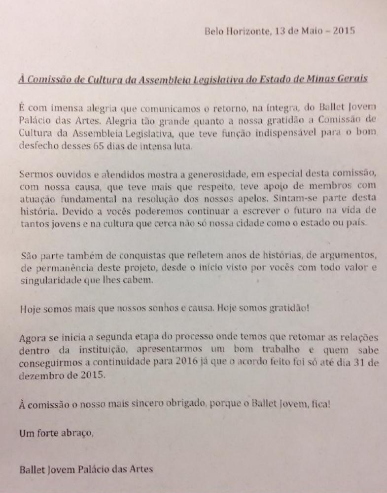 Vitória do Ballet Jovem. Vitória da Comissão de Cultura.
